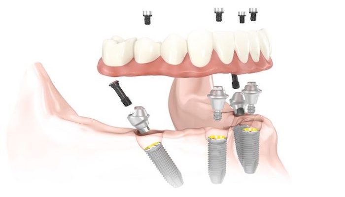 オールオン4は全歯のインプラントと比較し、埋入本数を少なくすることができるため、手術の負担を軽くすると同時に費用も抑えた形で自分の歯と同じような審美性、咀嚼能力を取り戻すことができる画期的な治療法です。